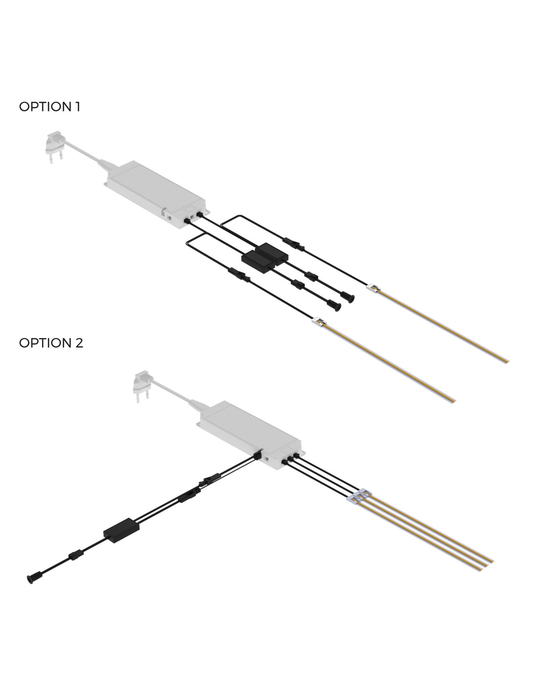 O bien, se puede conectar el sensor al convertidor por los 6 puertos o salidas secundarias con conexión Miniled, permitiendo independizar el encendido o apagado de las luminarias con un solo convertidor. En este tipo de instalación el sensor tiene un límite de potencia máxima admisible de 36W a 12V DC y de 72W a 24V DC.
