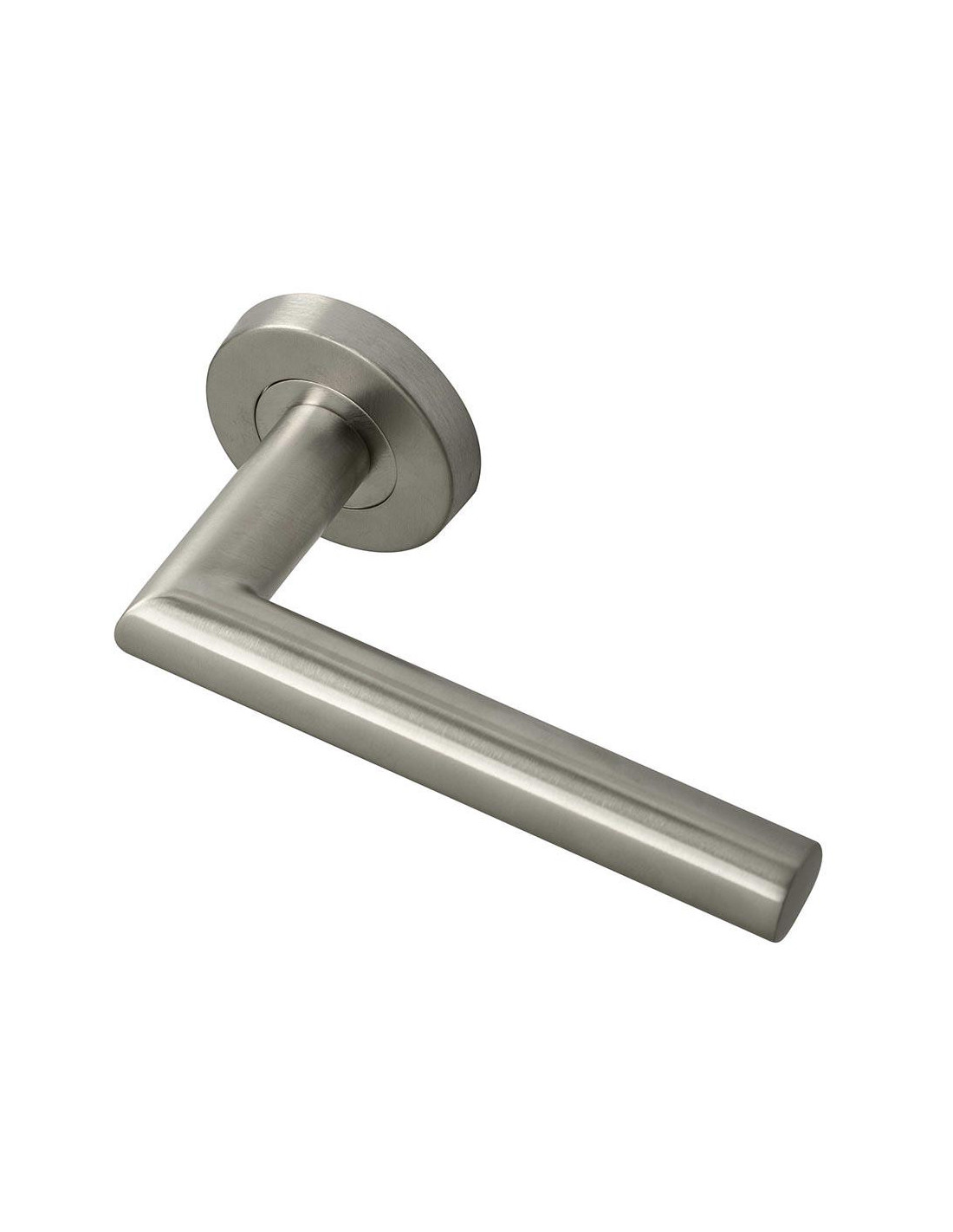 Juego de Manivelas de roseta Material: Acero Acabado: Inox Incluidos los elementos necesarios para su montaje. Tornillería y cuadradillo. Para puerta interior Sencilla y discreta, apta para cualquier tipo de ambiente."